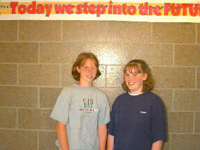 This is a picture of me and my friend Cassie. We like the window.Once again I am the one with the GAP shirt on and Cassie is the one with the striped shirt. That picture is kind of funny looking because the light cuts off half of my head. | |||||||||||||||||||||||